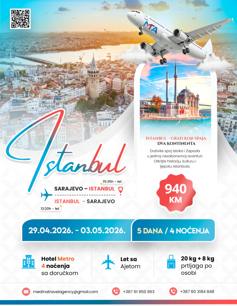 Tražiš Istanbul putovanje Sarajevo i želiš jasnu ponudu bez nepoznanica? Ovdje su informacije o aktuelnim terminima, šta je uključeno u aranžman, kakav je smještaj i kako najbrže rezervisati putovanje iz Sarajeva u Istanbul.